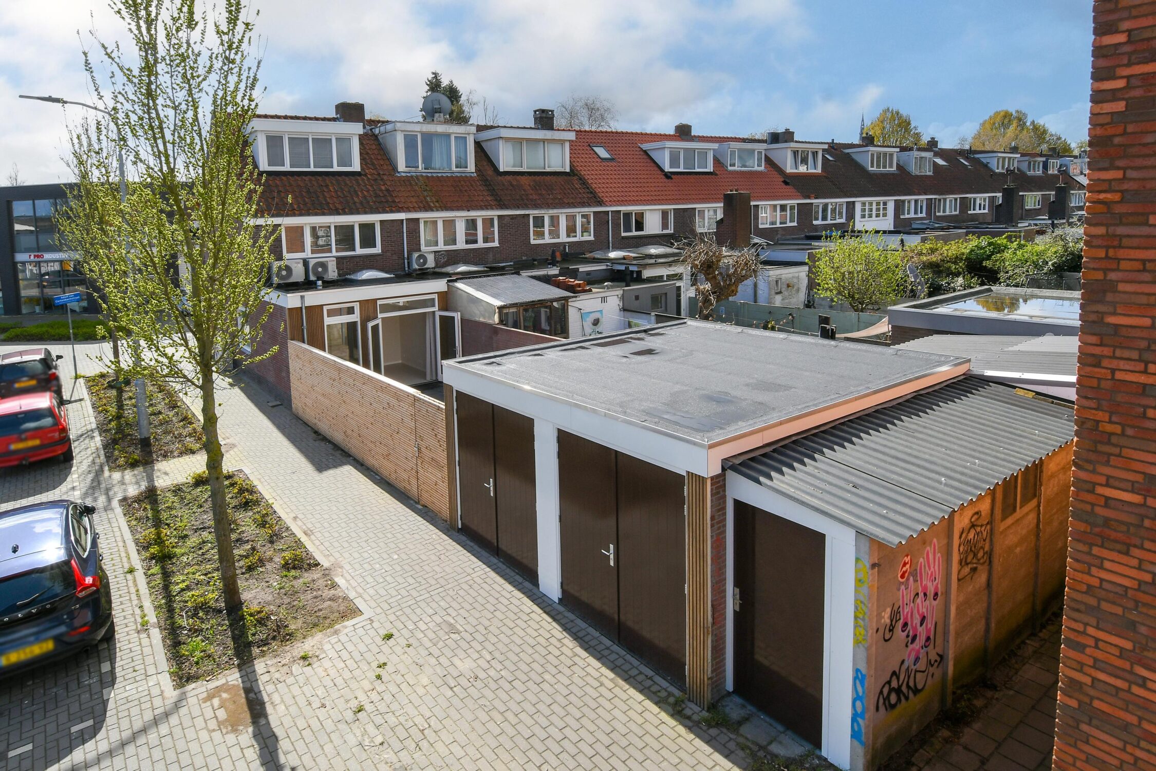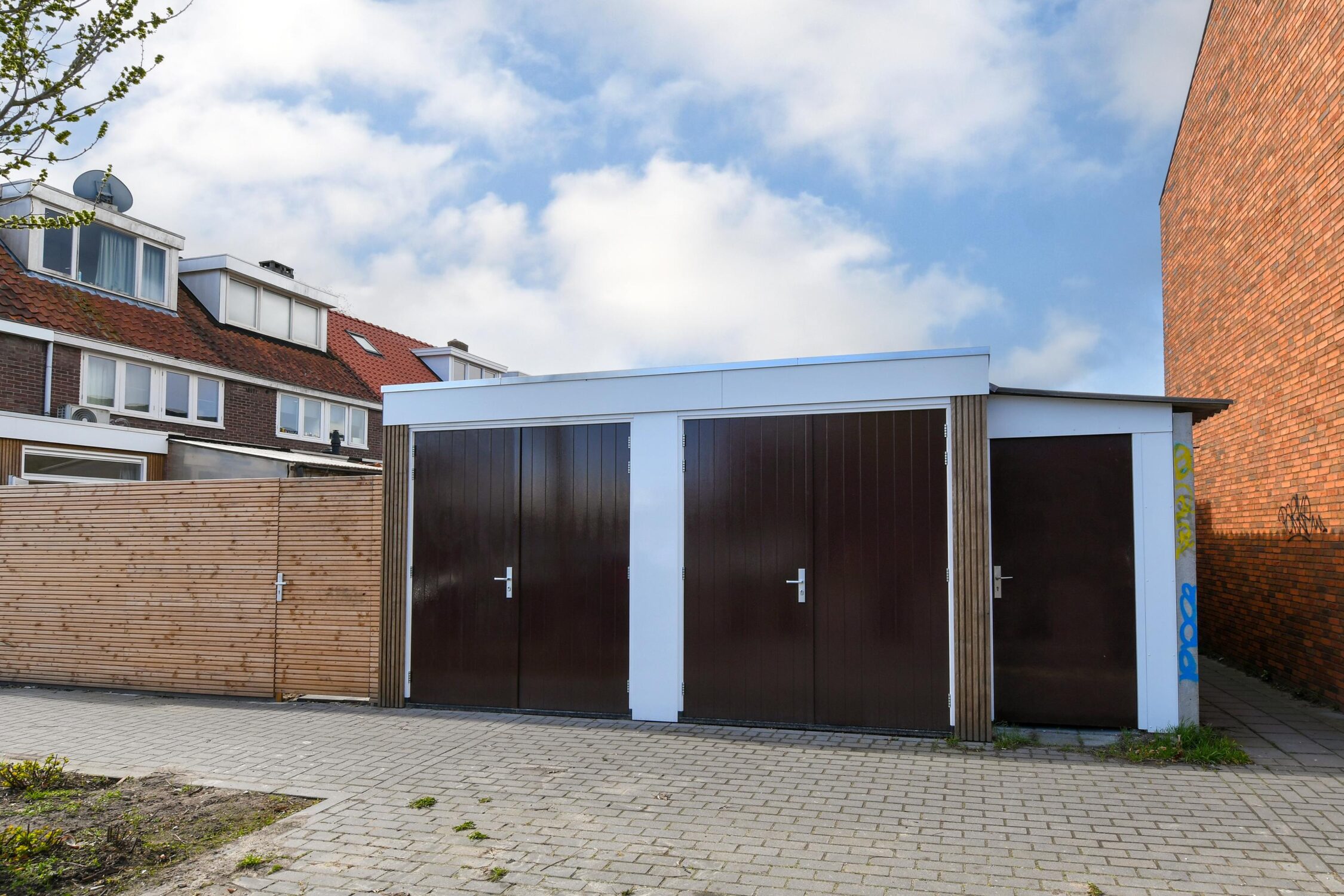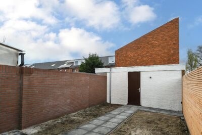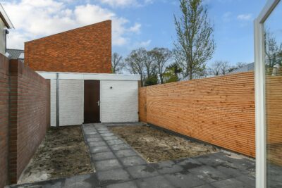 Achtertuin gelegen op het noordwesten met een terras, bestrating, berging en eigen achterom.