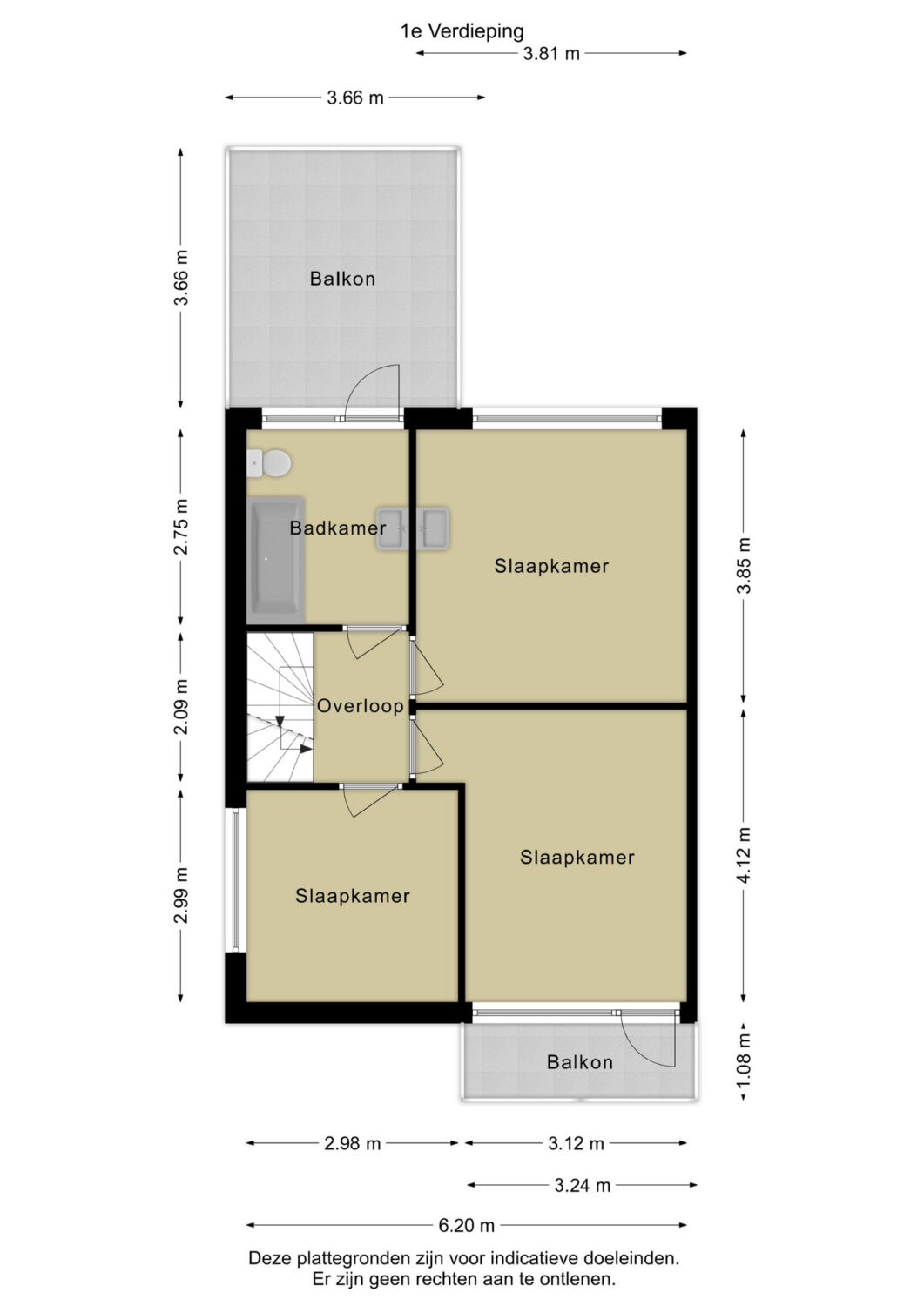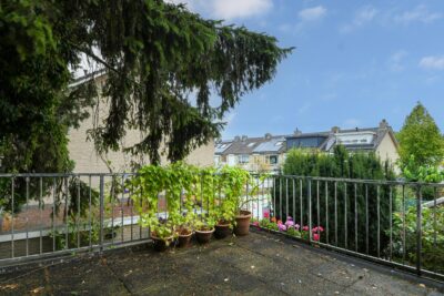 2 slaapkamers zijn gelegen aan de voorzijde van de woning en 1 aan de achterzijde. De grotere slaapkamer aan de voorzijde heeft toegang tot een balkon. De slaapkamer aan de achterzijde heeft een vaste wastafel.