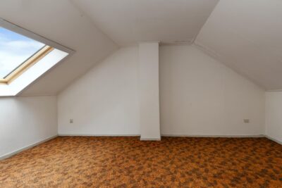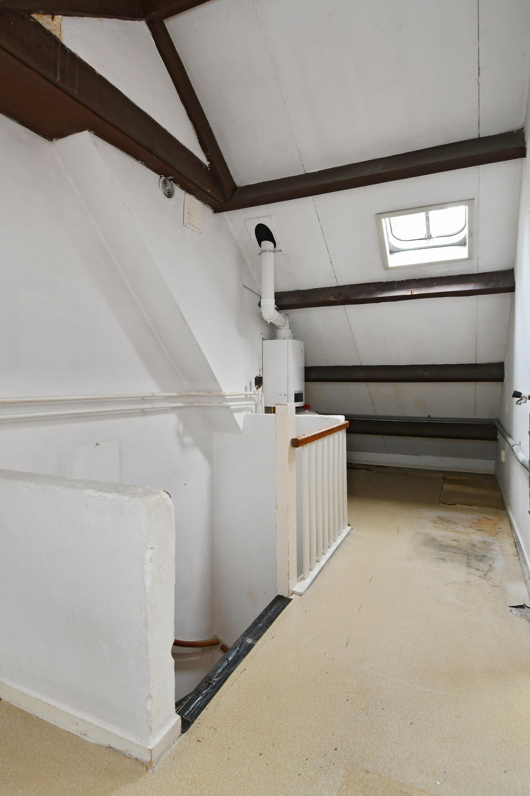 Middels een vaste trap te bereiken voorzolder met een dakraam, de aansluitingen voor de wasmachine en droger en de cv-installatie. Aansluitend een 4de slaapkamer met een dakraam en vaste wastafel.