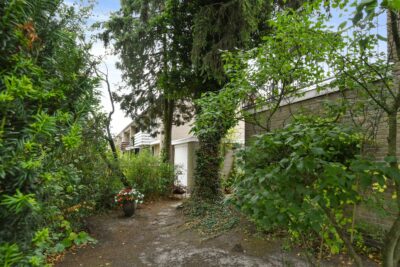 – Oprit en garage aan de achterzijde van de tuin, dus voldoende mogelijkheden voor het parkeren van een (elektrische) auto op eigen terrein;