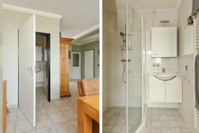 – De mogelijkheid bestaat qua ruimte om de badkamer naar de 1ste verdieping te verplaatsen en daarbij ook een aparte 2de (slaap-)kamer te realiseren;