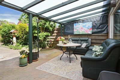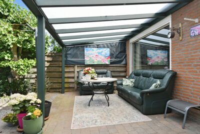 – Zonnige en 14 meter diepe achtertuin met veranda, berging en achterom;