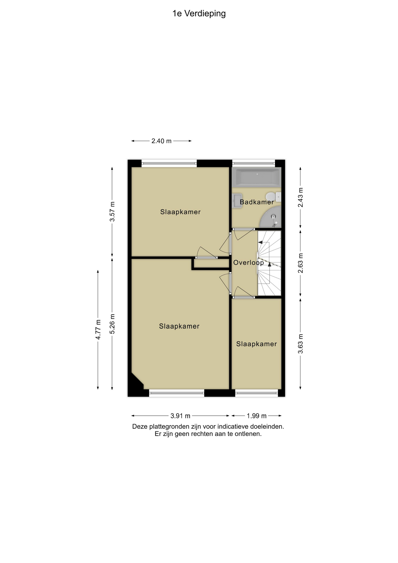 Overloop met aansluitend 3 slaapkamers en de badkamer. De overloop en slaapkamers zijn voorzien van een laminaatvloer.
