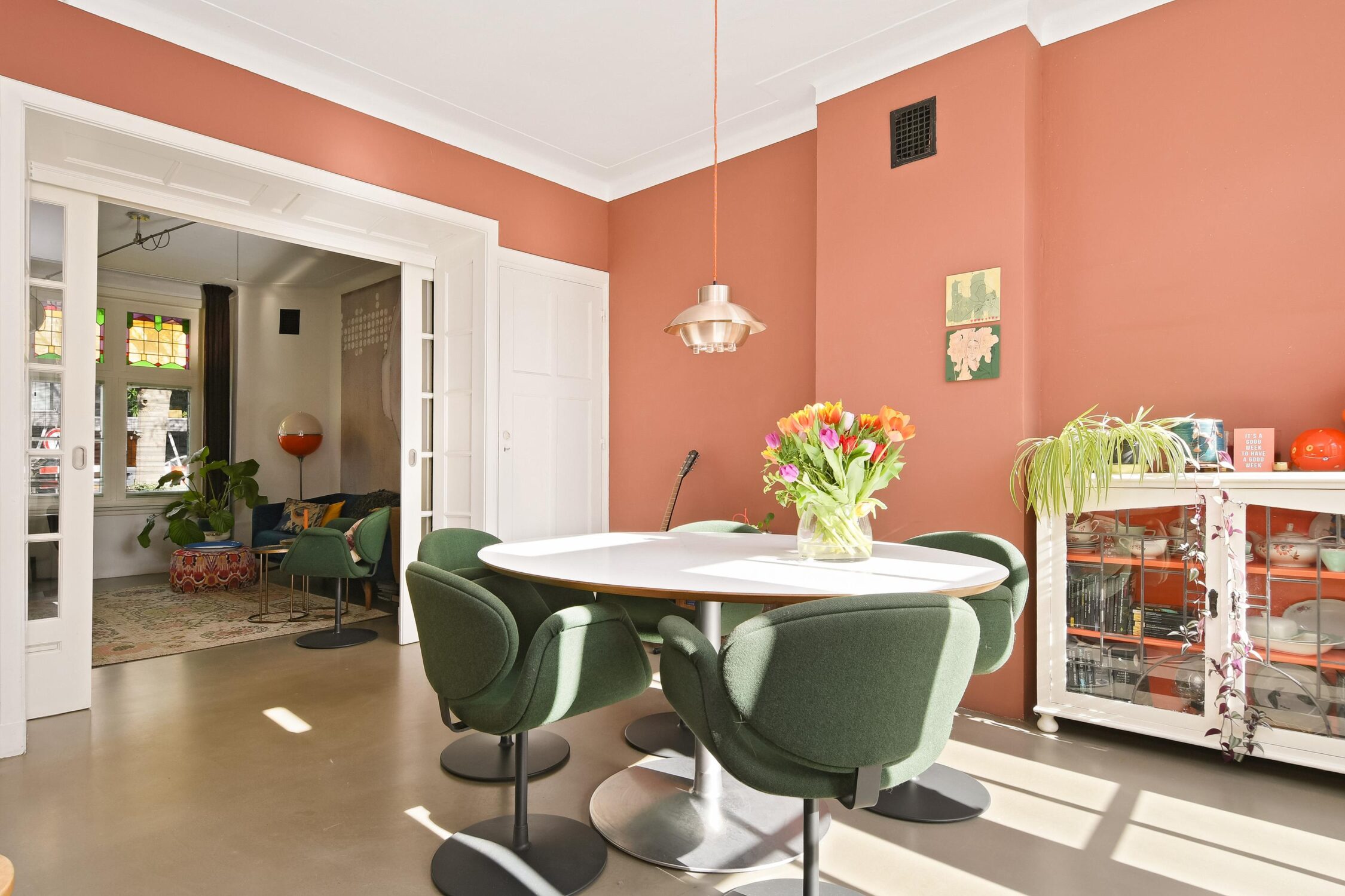 – Voorzien van authentieke elementen zoals glas-in-loodramen, wandbetegeling, terrazzovloer en paneeldeuren;