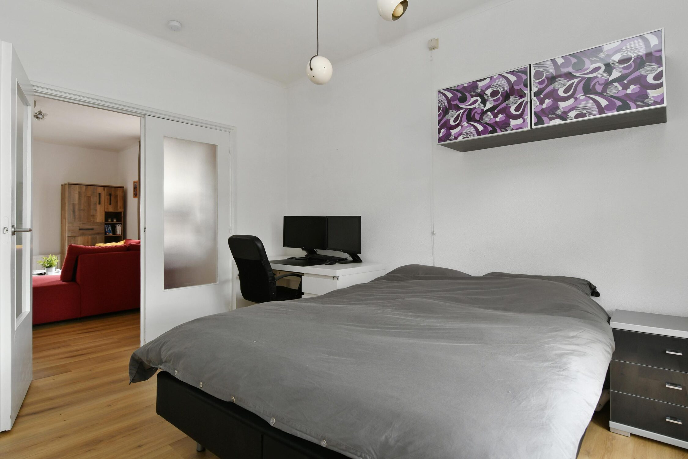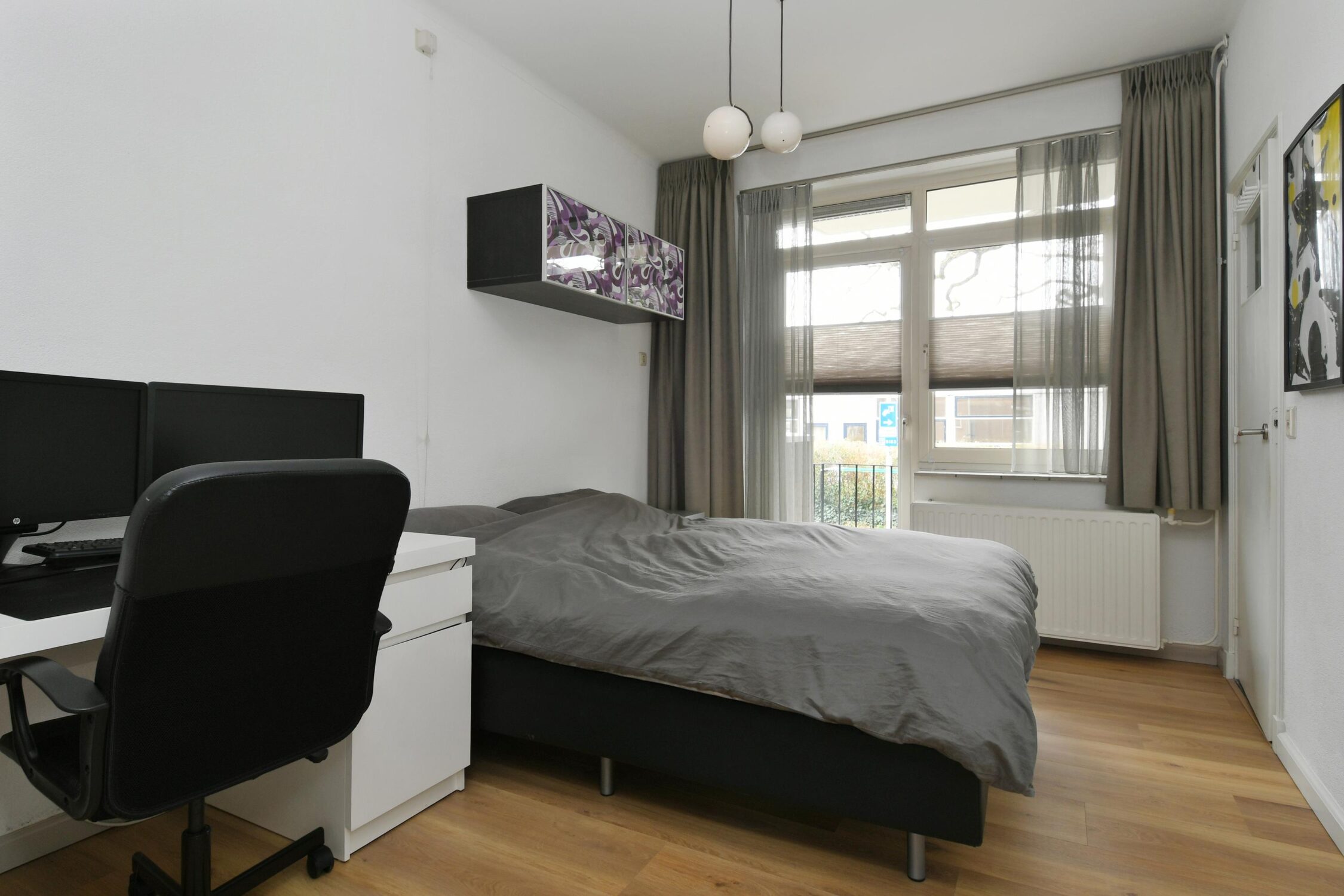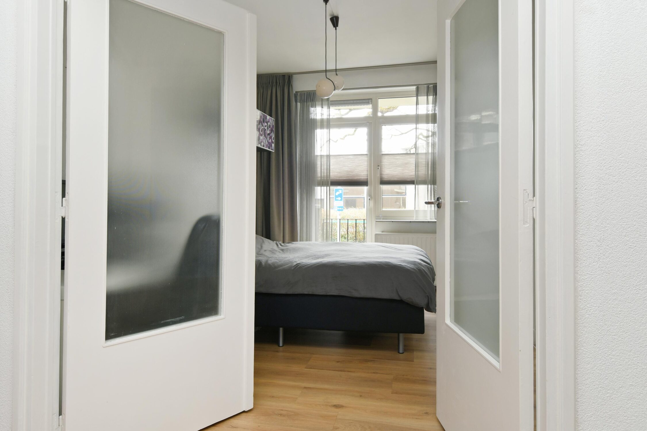 De woning beschikt over 2 slaapkamers, die beide aan de achterzijde zijn gelegen. De grote slaapkamer biedt toegang tot het balkon aan de achterzijde en de badkamer. De kleinere slaapkamer is voorzien van de aansluiting voor de wasmachine.