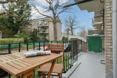Balkon 2, gelegen op het zuidwesten, met uitzicht op de Stolbergstraat.