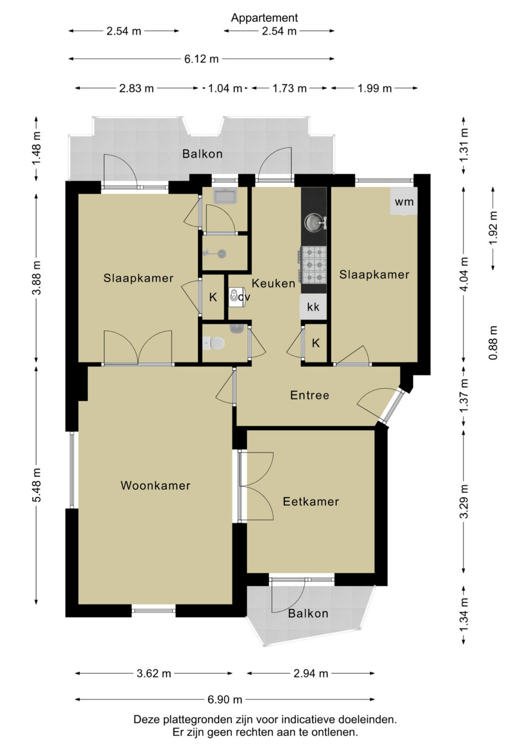 – Alternatieve indelingen mogelijk met bijvoorbeeld een derde slaapkamer, aparte eetkamer of grotere woonkamer door de grote slaapkamer bij die woonkamer te ‘trekken’;