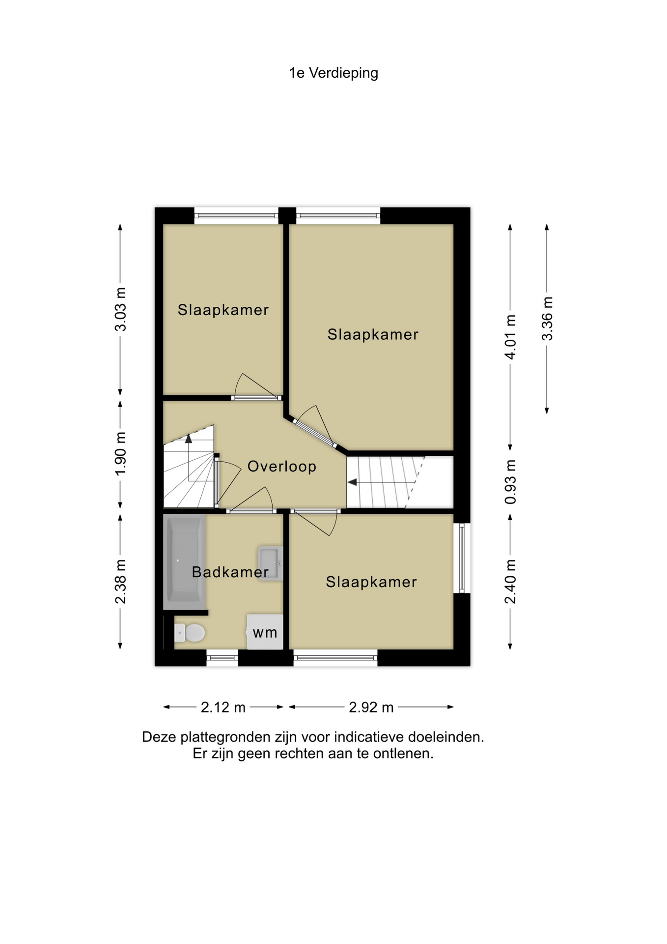 Overloop met aansluitend 3 slaapkamers en de badkamer.