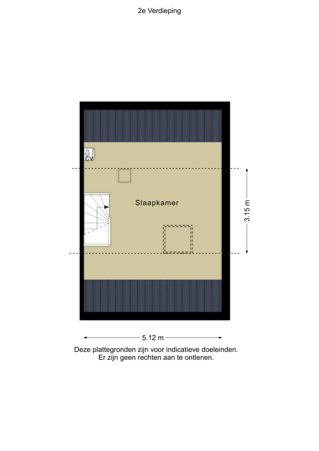 Via een vaste trap te bereiken open zolder verdieping met de cv-installatie, mechanische ventilatie unit en 2 dakramen. De mogelijkheid bestaat om hier een aparte 4de (slaap-)kamer te realiseren.