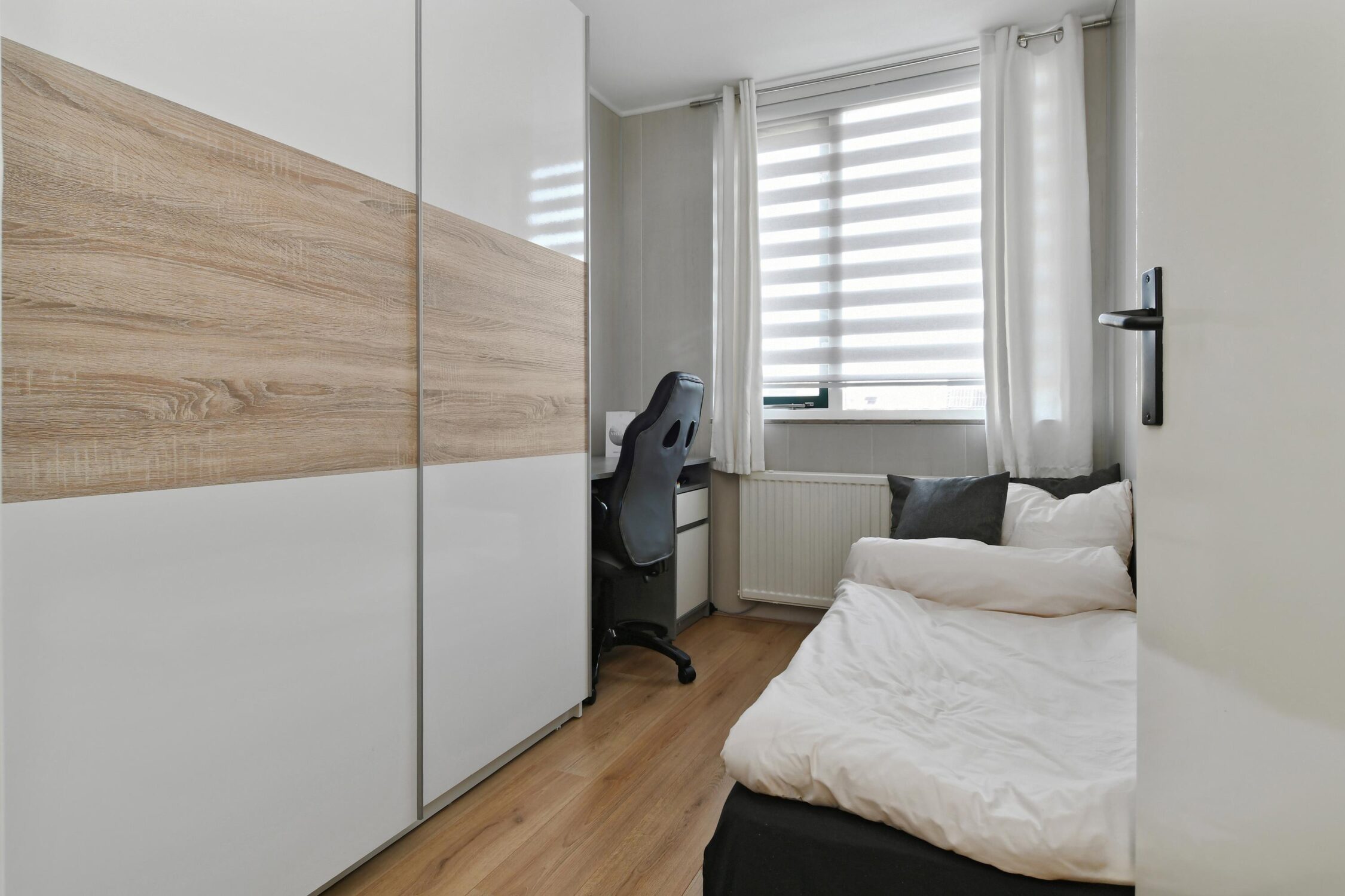 1 slaapkamer is gelegen aan de voorzijde van het huis en 2 slaapkamers aan de achterzijde. De kamers zijn respectievelijk 7 m2, 11 m2 en 6 m2. De ouderslaapkamer beschikt ook over airco.