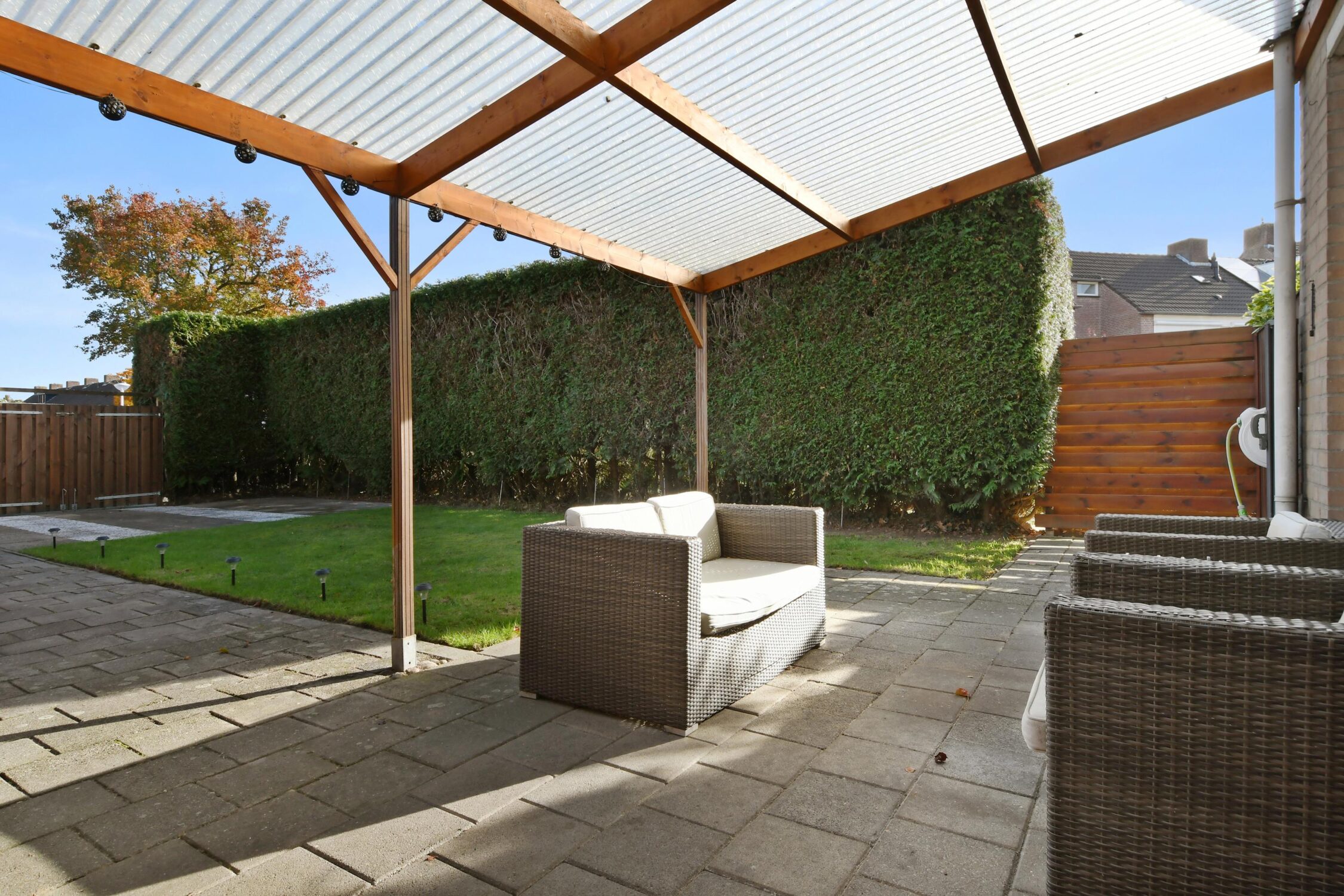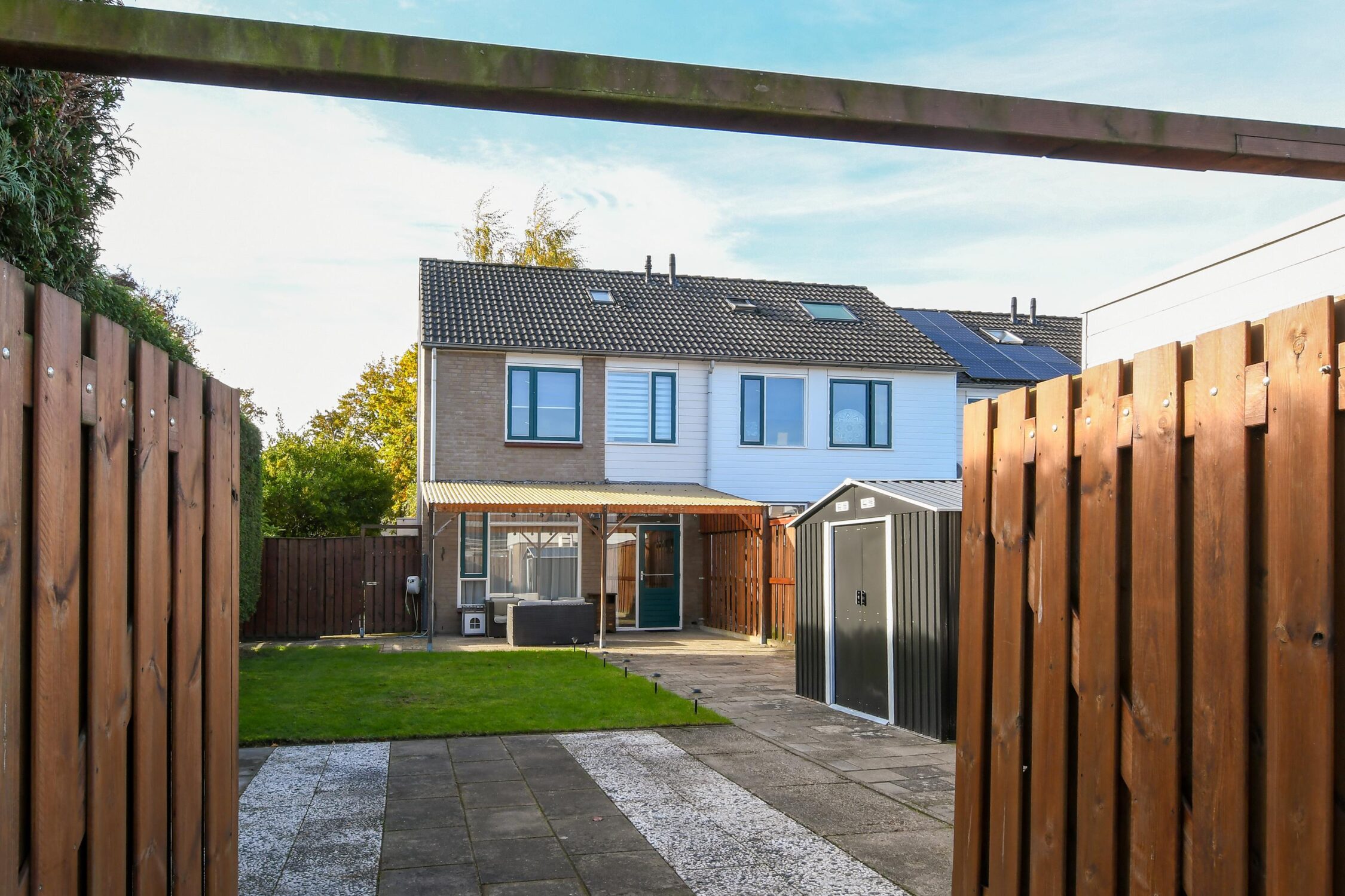 – 16 meter diepe grote en volop privacy biedende achtertuin met veranda en 2 bergingen;
