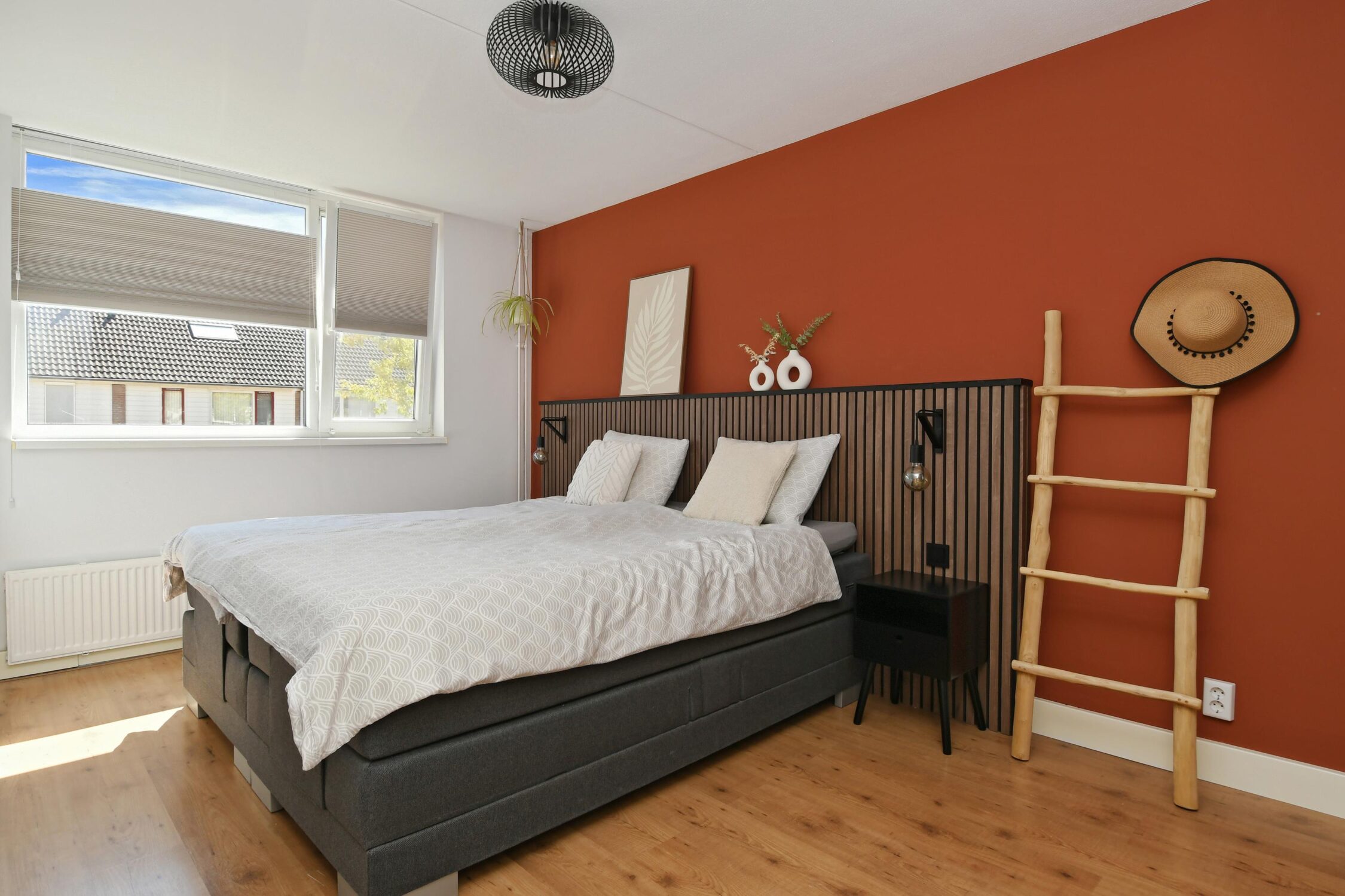 2 slaapkamers zijn gelegen aan de voorzijde van het huis en 1 slaapkamer aan de achterzijde. De kamers zijn respectievelijk 7 m2, 13 m2 en 8 m2.