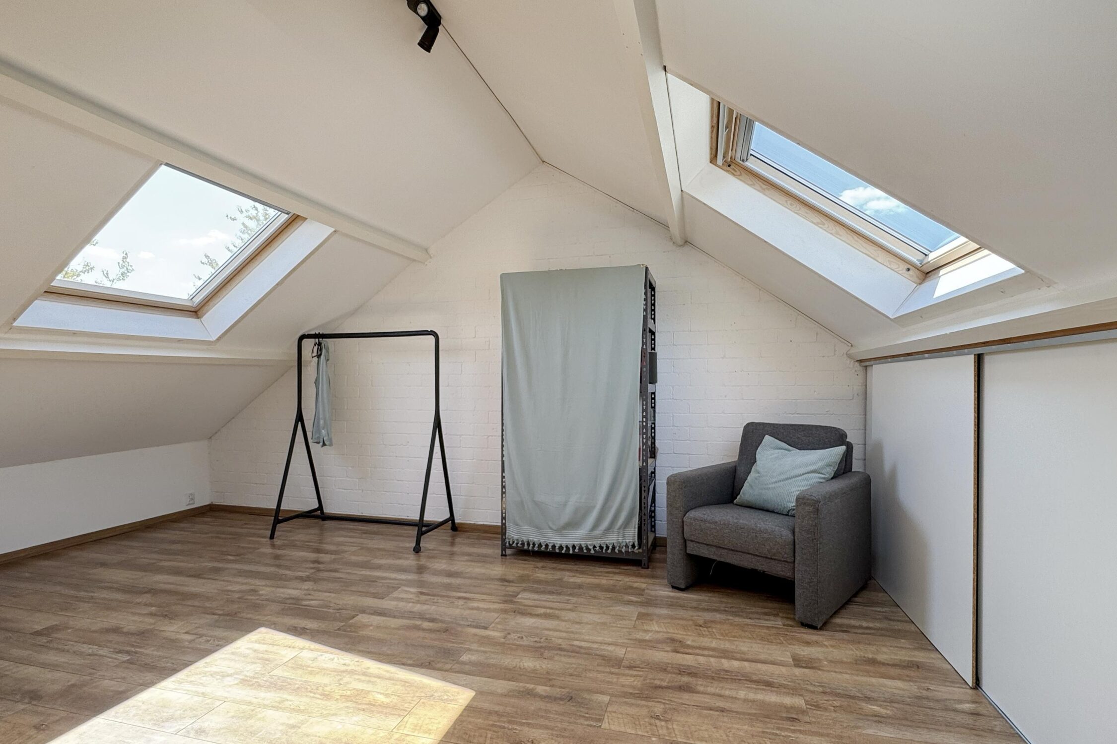 Via een vaste trap te bereiken open verdieping met 2 dakramen en een aparte cv-/wasruimte. De cv-/wasruimte is voorzien van de cv-installatie en de aansluitingen voor de wasmachine en droger. Door het plaatsen van een wand kan een aparte (slaap-)kamer worden gerealiseerd.