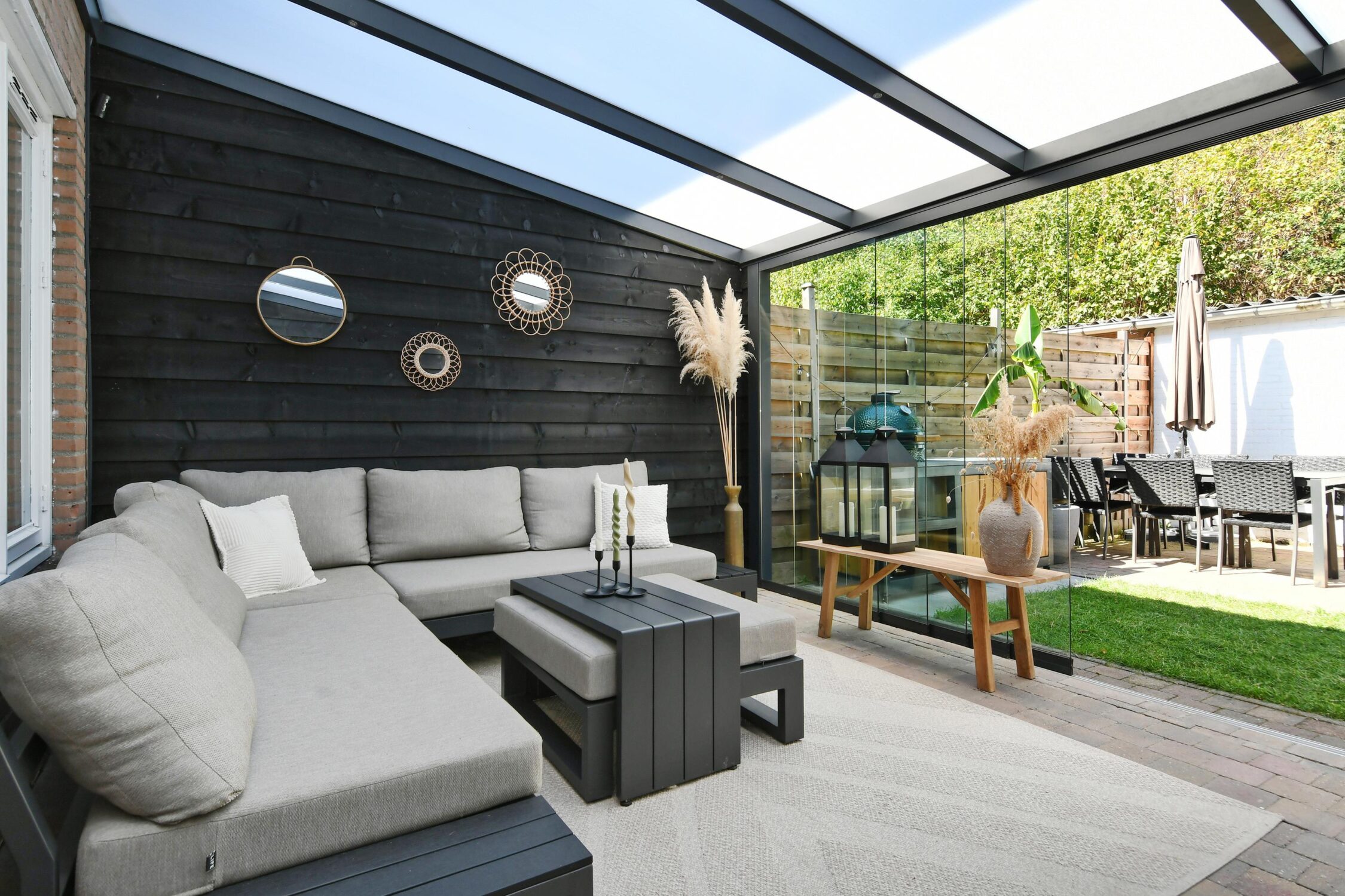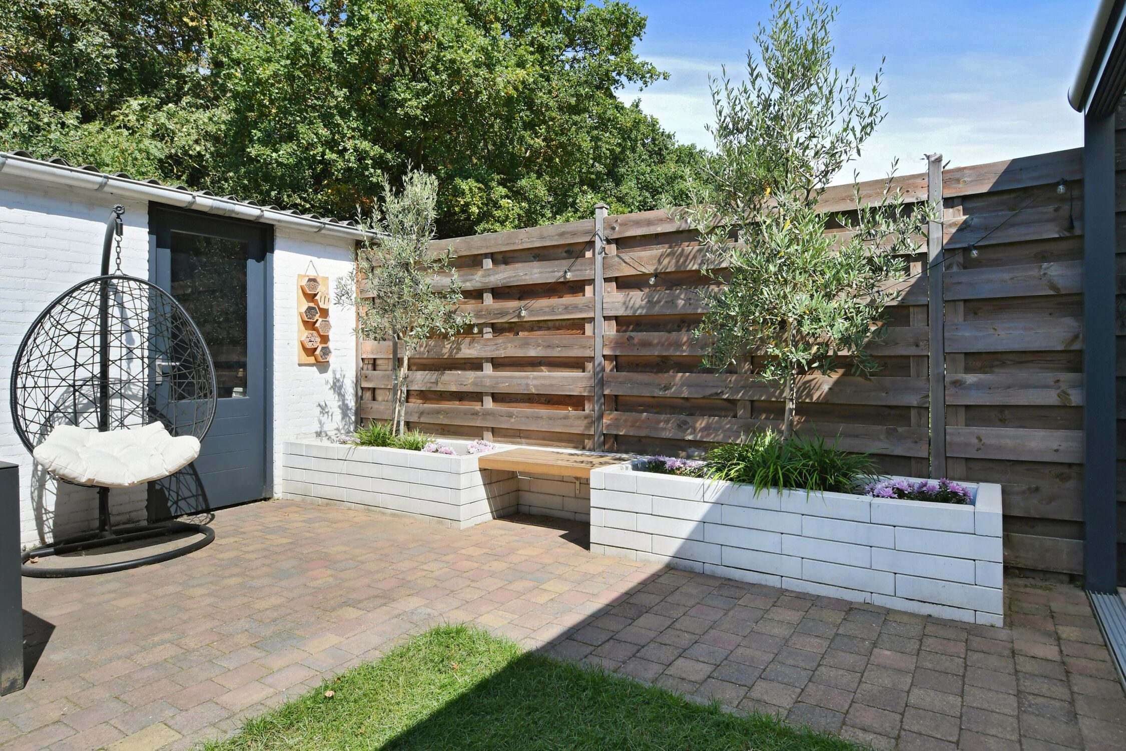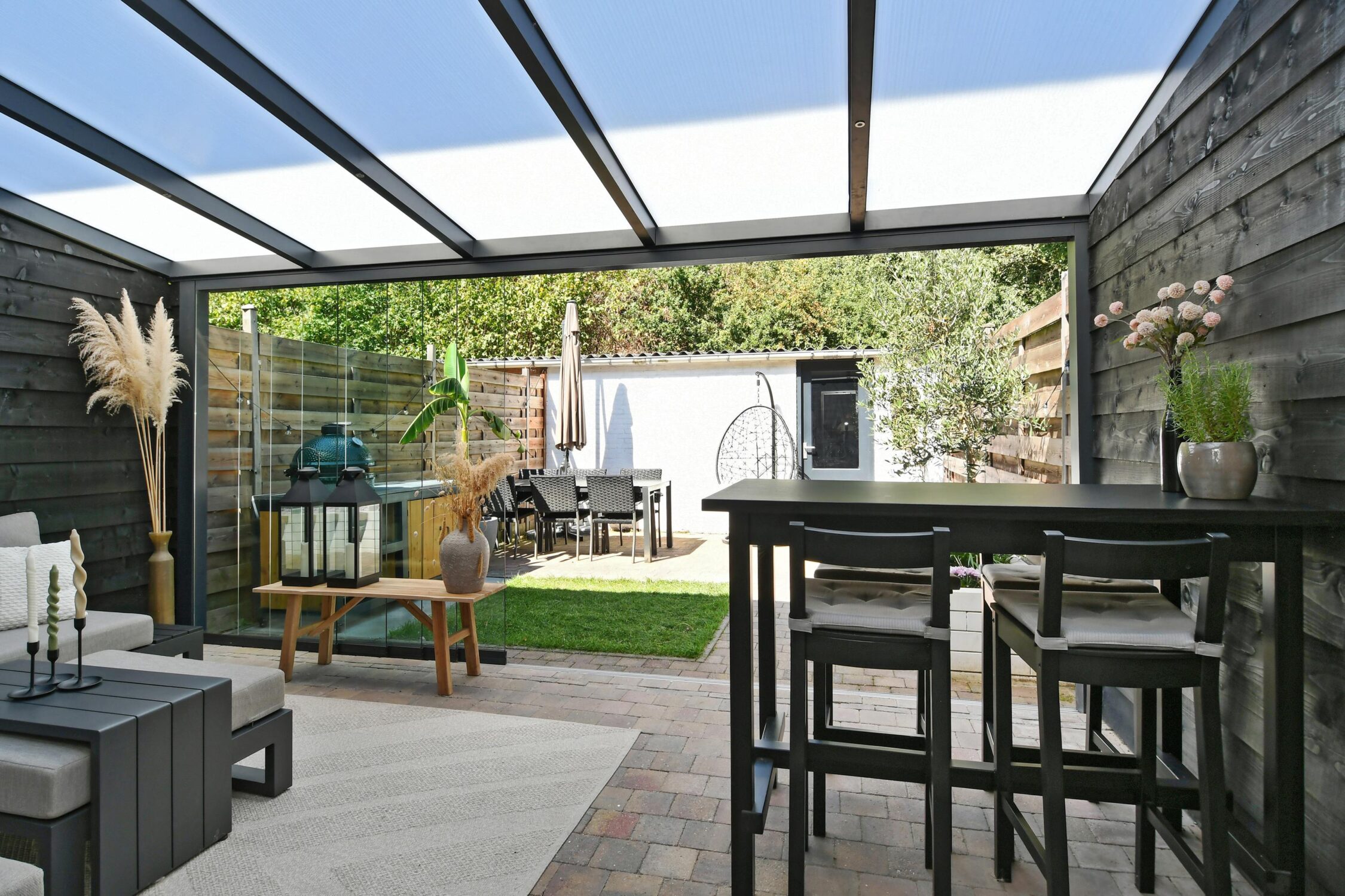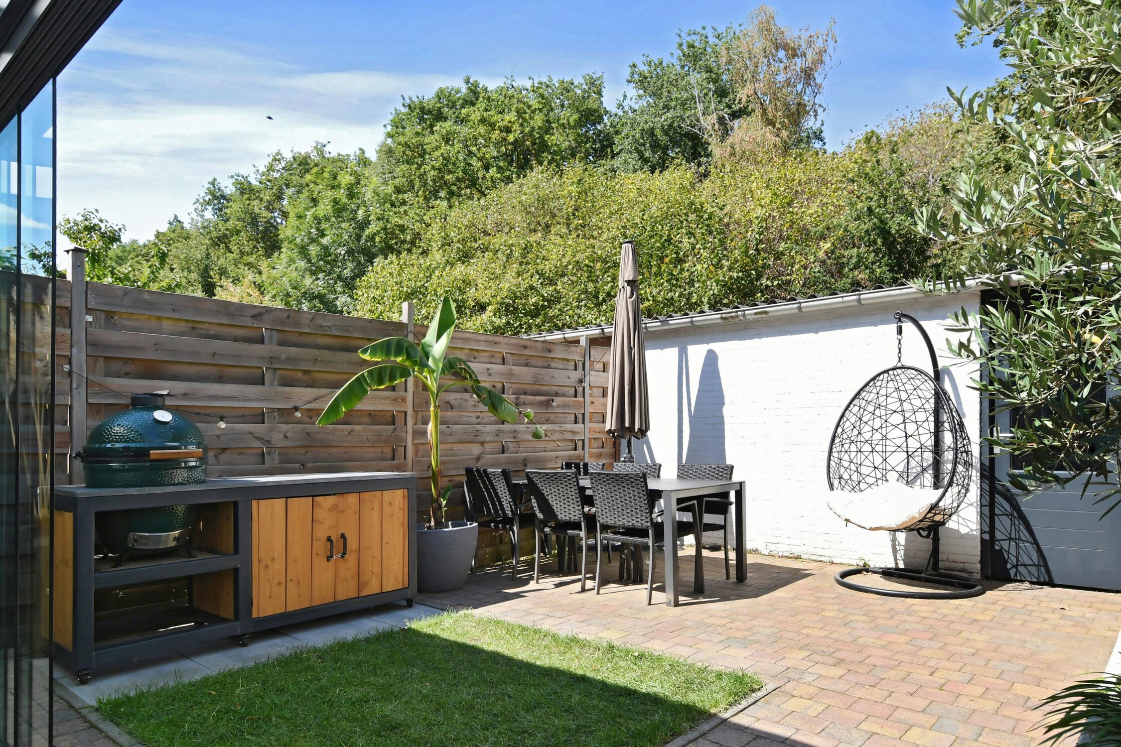 – Achtertuin met veranda en grote berging;