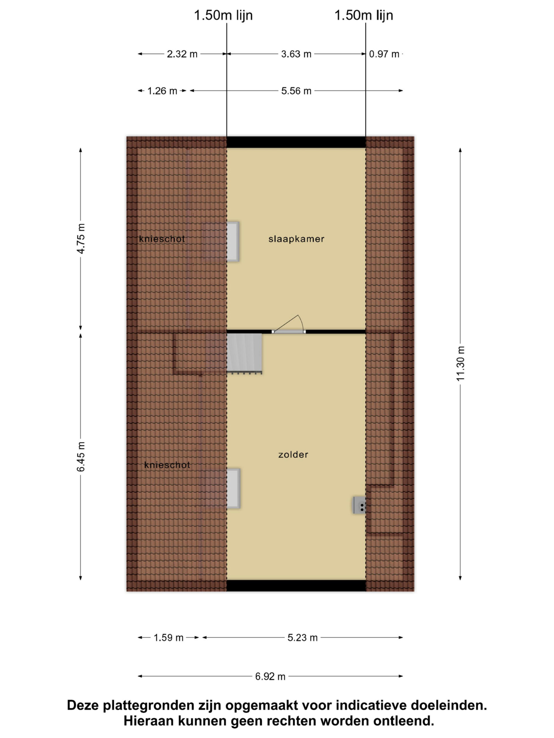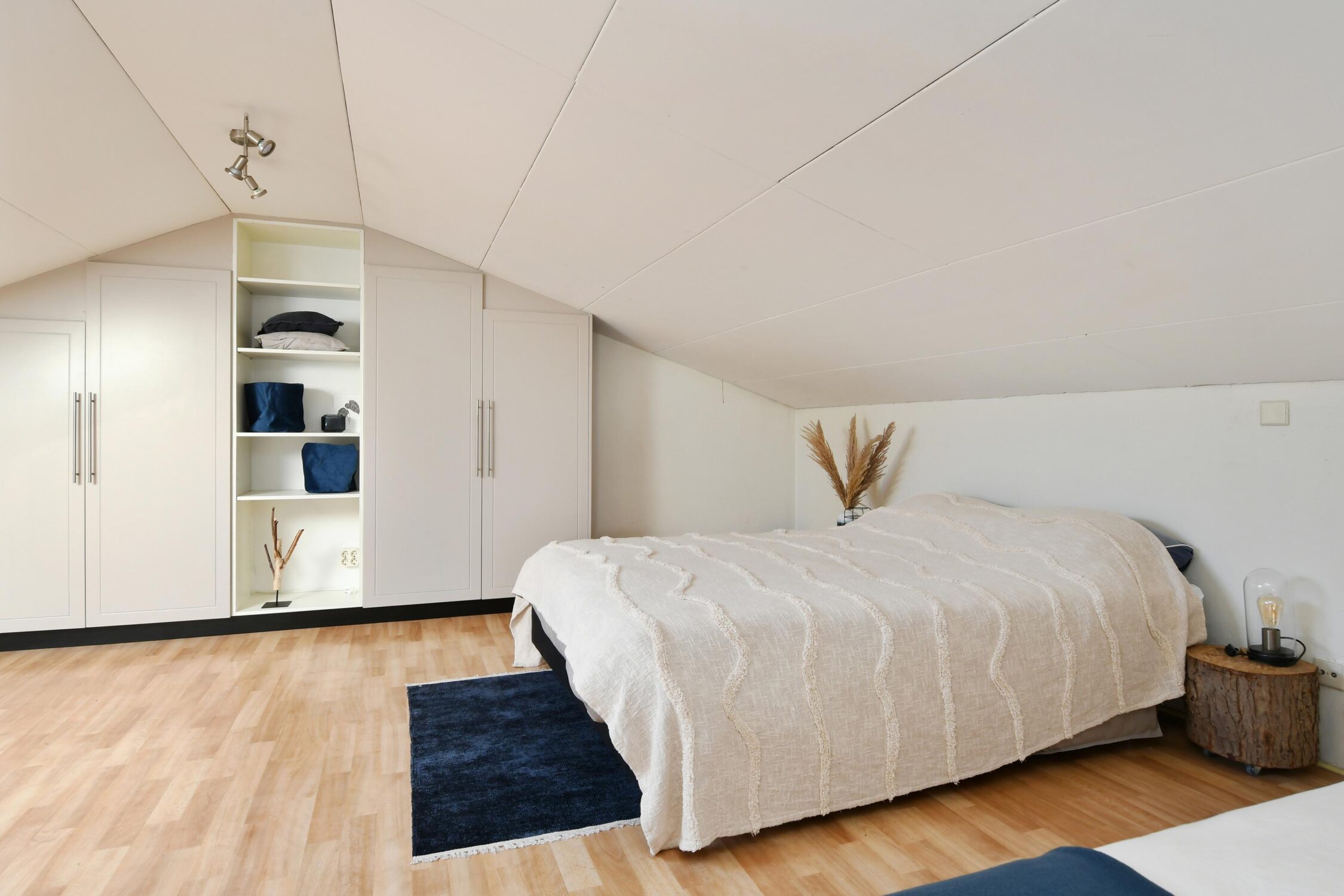 Grote open zolderruimte met de cv-installatie, een dakraam en bergruimte onder de schuine kanten. Aansluitend een 5de slaapkamer met een dakraam en bergruimte onder de schuine kanten. Op deze verdieping zou nog op eenvoudige wijze een aparte 6de (slaap-)kamer kunnen worden gerealiseerd.