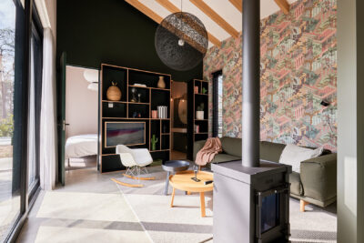 Het werk van de architect (Jochem Alferink, ExMaterials) en de binnenhuisarchitect hebben een recreatiewoning gebouwd die alles uit de vierkante meter haalt. Slim, modern en veel ruimte door de hoge plafonds. De moderne afwerking en het fraaie bosrijke uitzicht maken dit een prachtige plek voor natuurliefhebbers. Maar met het prachtige Zelhelm op nog geen 10 minuten afstand is de bewoonde wereld ook erg dichtbij.