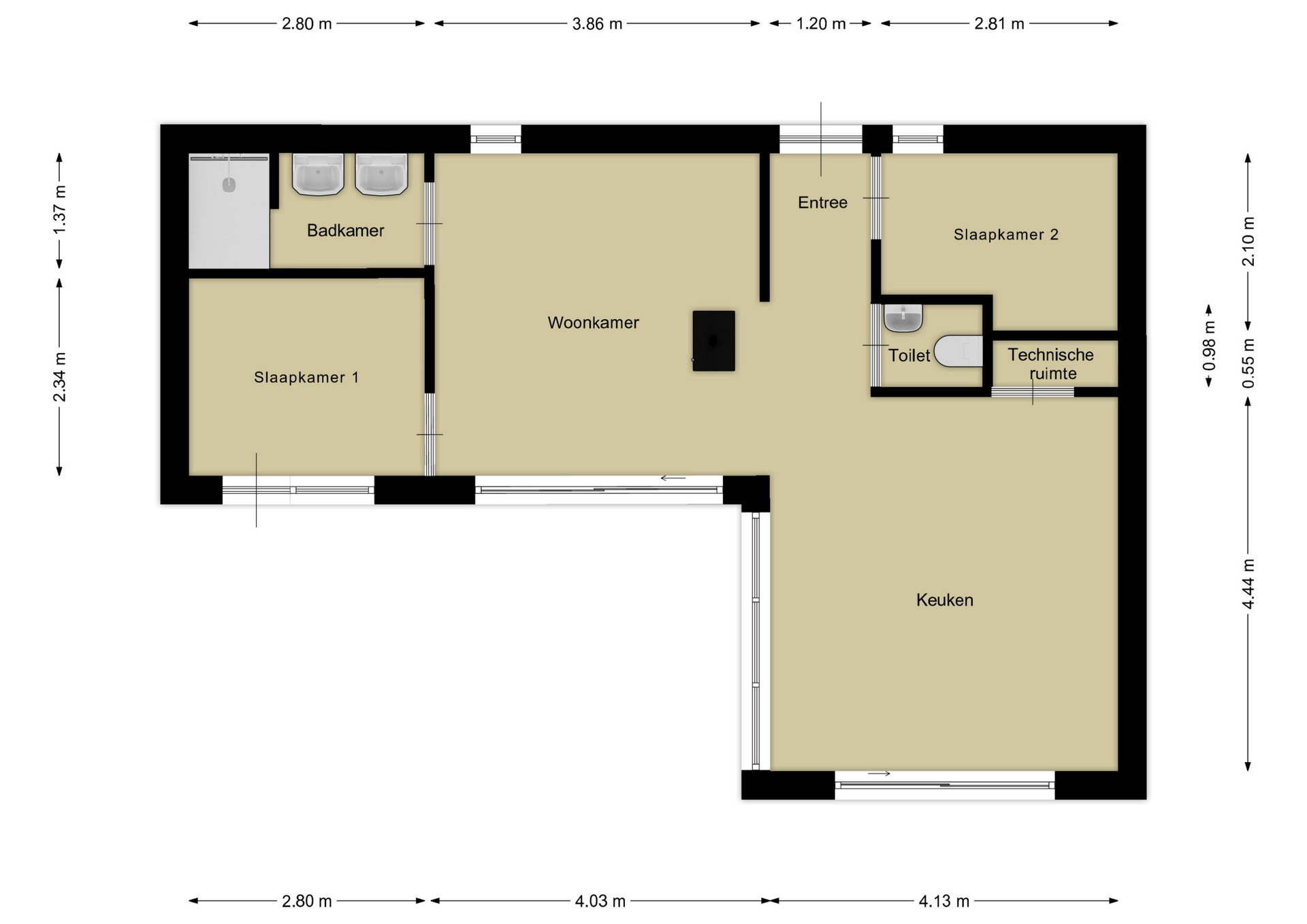 • 2 slaapkamers verdeeld, waarvan 1 met een extra slaap vide (geschikt voor 2 extra kinderbedden).
