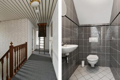 Overloop met aansluitend 4 slaapkamers, toilet en badkamer. De overloop is afgewerkt met vloerbedekking die doorloopt in de slaapkamers.