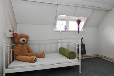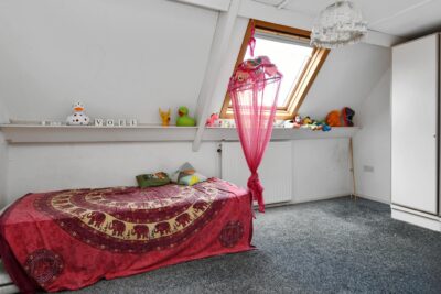 4 slaapkamers zijn gelegen aan de linkerzijde van het huis en 1 aan de rechterzijde. De kamers zijn allen afgewerkt met vloerbedekking.
